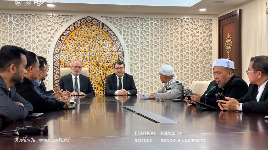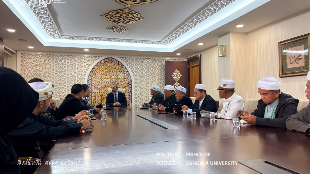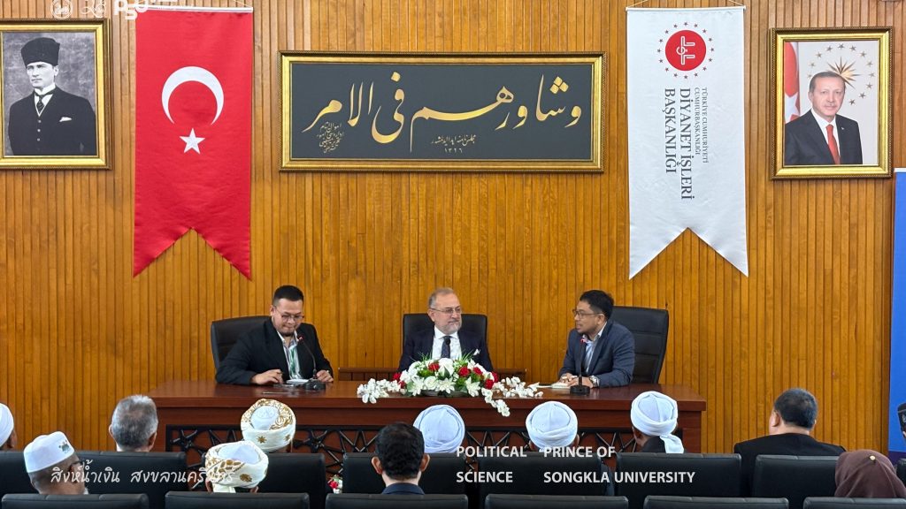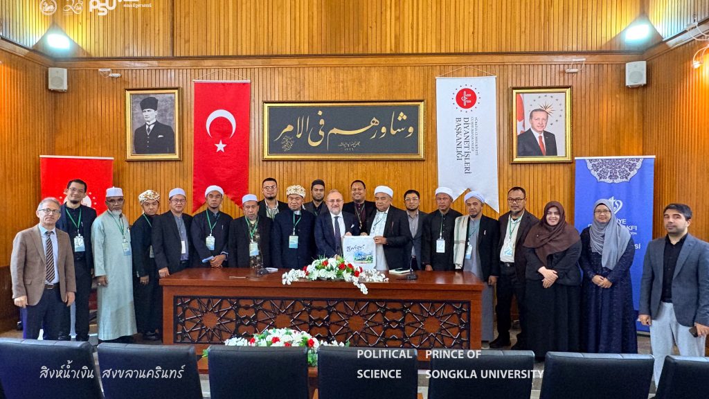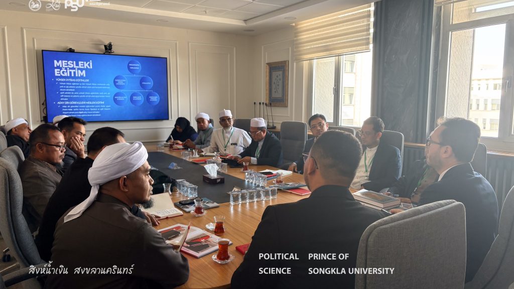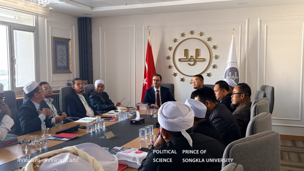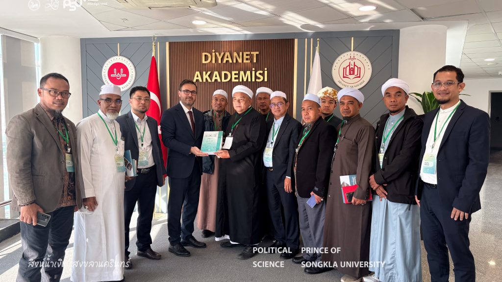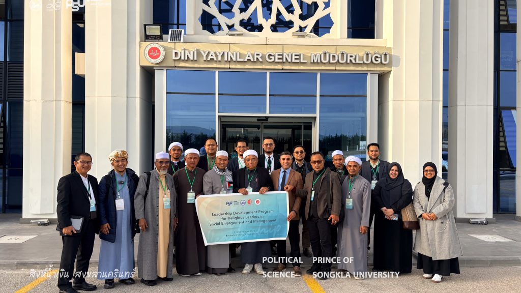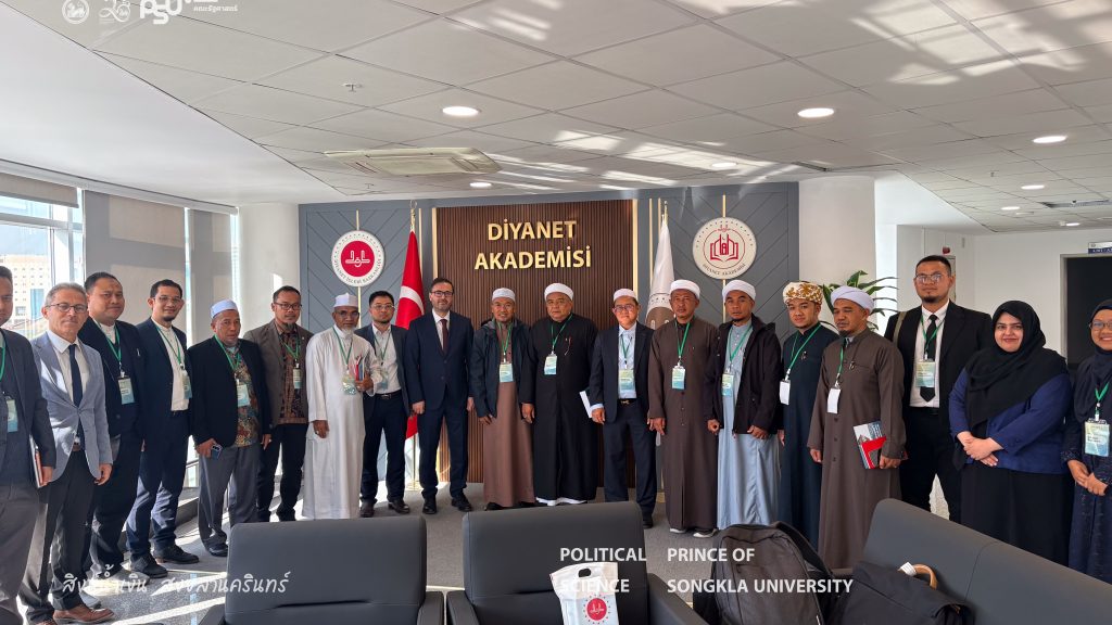 The Turkish Studies Center, Faculty of Political Science Prince of Songkla University in collaboration with the Pondok Institute Network Association and representatives from religious institutions and various civil society organizations in the Southern Border Provinces of Thailand, participated in a study visit and leadership development training program at the institutions under the Presidency of Religious Affairs of the Republic of Türkiye from 2–9 November 2025 in Ankara and Istanbul, Republic of Türkiye. The program aimed to enhance knowledge and exchange experiences in religious organizational management, the role of religion in social development, community strengthening, and learning best practices from a national religious institution of Türkiye. The insights gained from this program will be applied to the development of religious and social initiatives within the Thai context.